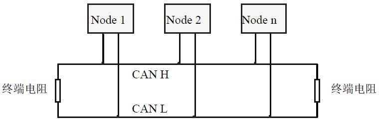 CAN-bus网络采用直线拓扑结构,总线最远的2个终端需要安装120Ω的终端电阻;如果节点数目大于2,中间节点不需要安装120Ω的终端电阻。对于分支连接,其长度不应超过3米。CAN-bus总线的连接如图3.1所示。