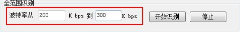 波特率自动识别功能按检索范围的不同,可分为两种模式:A.标准波特率识别(对标准的CAN波特率进行一一识别),B.全范围波特率识别(手动输入识别范围,软件将对范围内的波特率进行全面匹配)。例如,某CAN总线系统的波特率未知,使用标准波特率识别显示“没有找到合适的波特率”时,您可在“全范围识别”区域设置波特率从5kbps识别到1000kbps,即可识别到所需的波特率。