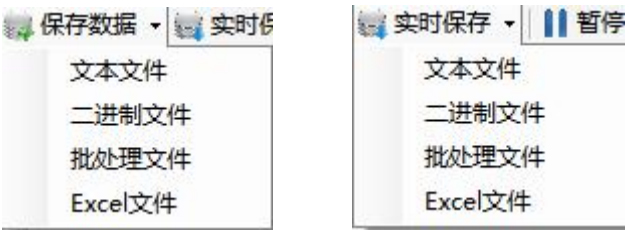 点击工具条上的“实时保存”,设置实时保存的文本类型和文件名,便可开始数据实时保存功能(即设置保存节点A),再次点击(即设置保存节点B),系统会停止保存,并将从开始(A)到结束(B)的数据全部写入保存文件。请注意,系统并不会实时写入数据。即在实时保存过程中,保存的文件中并不会有数据。