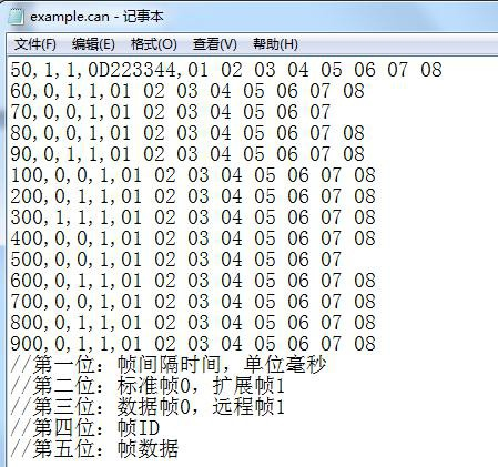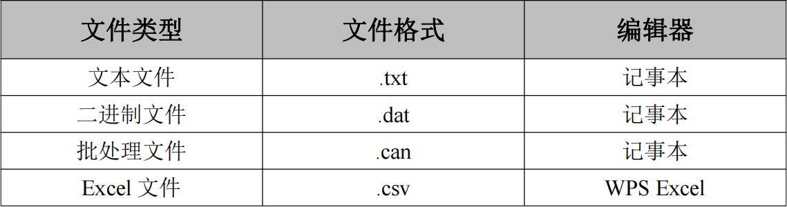 文本文件便于数据保存及后期分析,批处理文件可通过记事本软件进行修改后重新发送回总线。对于批处理文件格式的说明详见4.4.3。