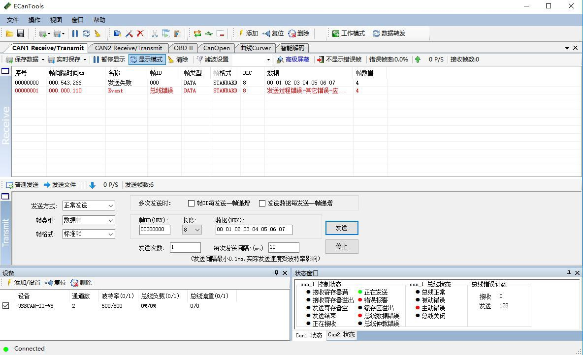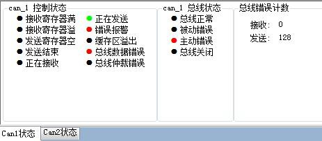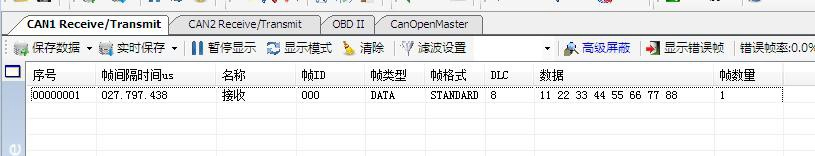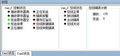 软件可以捕获总线上的错误帧,当接收到错误帧时,在接收列表中将以飘红的形式显示出来。