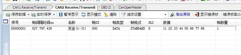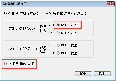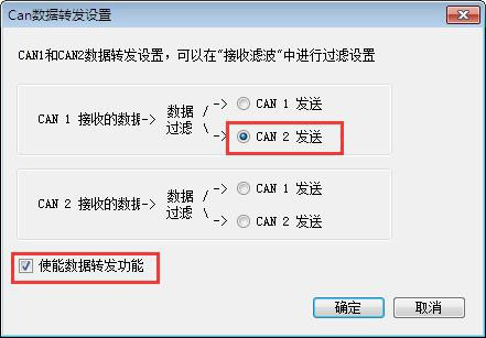 ②CAN1接收的数据-CAN2发送:CAN1通道收到数据后经过滤波将这条数据从CAN2通道发出,此处CAN1和CAN2通道可设置不同的波特率。