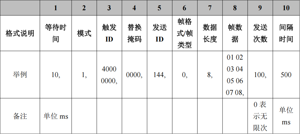 第六位(1):发送时间间隔,单位ms;第七位(1000):发送次数。