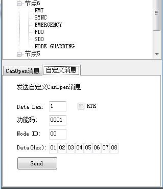 ECANTools软件还可通过编辑自定义消息手动模拟CANopen数据,用户可直接通过编写功能码、从站node ID、数据的方式直接向CANopen从站发送数据。