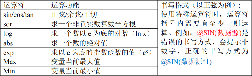 曲线功能中可提供的特殊运算如下表所示,请严格按照运算形式书写!