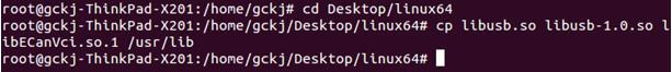 输入:cp libusb.so libusb-1.0.so libECanVci.so.1/usr/lib(默认路径为/usr/lib)