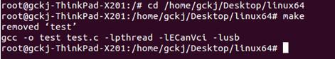 6.再次进入USBCAN驱动文件夹,编译。输入:make