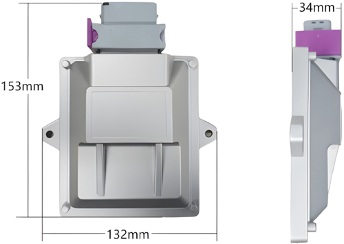 设备外形尺寸:(长,含接线端子)153mm*(宽)132mm*(高)34mm,其示意图2.1及图2.2所示,用户可根据此尺寸设计GCAN-212-W的安装固定孔。