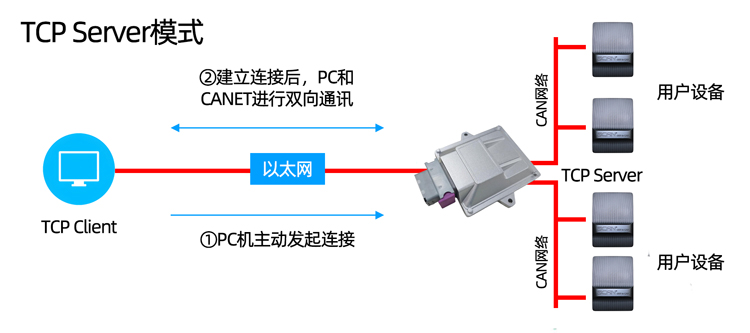 数据1,数据2:02 04表示设置以太网工作模式;数据3:01表示CAN1通道;02表示CAN2通道。数据4:00;数据5:01=TCP Server,02=TCP Client,03=UDP。