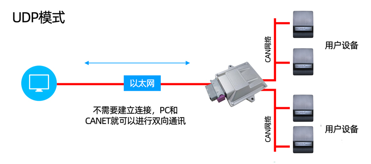 广成科技GCAN-212-W接口卡的以太网接口符合以太网标准协议规范,设备集成10/100M自适应以太网芯片,支持即插即用。用户可以使用标准以太网网线将工业以太网与GCAN-212-W连接。GCAN-212-W支持3种工作模式——TCP Server模式、TCP Client模式、UDP模式。这3种工作模式的介绍详情如下: