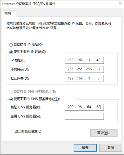 图3.2 TCP/IP常规设置