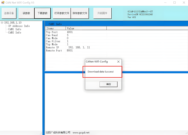 图4.8广成科技GCAN-212-W配置成功
