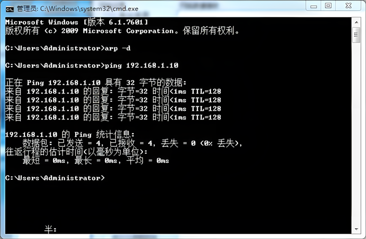 调试之前请确保您已将GCAN-212-W配置完毕。如果您使用PC机与GCAN-212-W设备进行连接,您可在GCAN-212-W设备上电后,进入计算机的cmd命令提示符(“开始”——“运行”——输入“cmd”后点击确定),依次输入“arp-d”命令和“ping 192.168.1.10”命令(或您配置的其他IP),确认GCAN-212-W已与计算机正常连接。正常连接后的cmd显示窗口如下图所示: