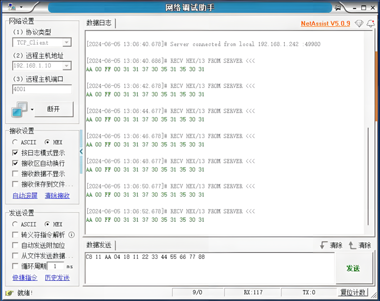 5.2TCP Server模式通信测试