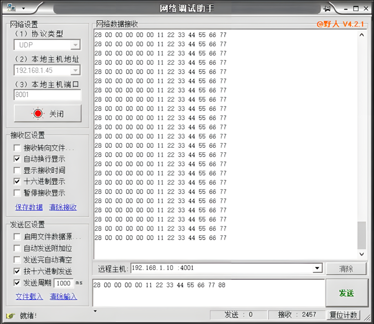 升级完成后,对模块重新上电即可使用。5.网络调试助手使用方法