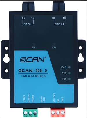 沈阳广成科技有限公司GCAN-208-2-F系列模块是集成2路标准光纤接口(单模、多模,SC、ST、FC可选)、1路标准CAN总线接口的工业级CAN总线转光纤转换器。