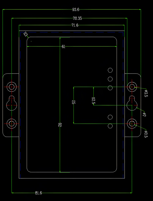 设备外形尺寸:(长,含接线端子)118mm*(宽)93mm*(高)22mm,其示意图如图2.1所示。