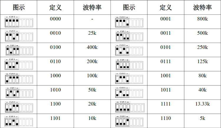 其中,“CAN1b”中CAN1代表CAN1通道,b代表设备通过配置拨码开关方式配置的波特率。a代表的是设备是通过自动识别的方式配置的波特率。