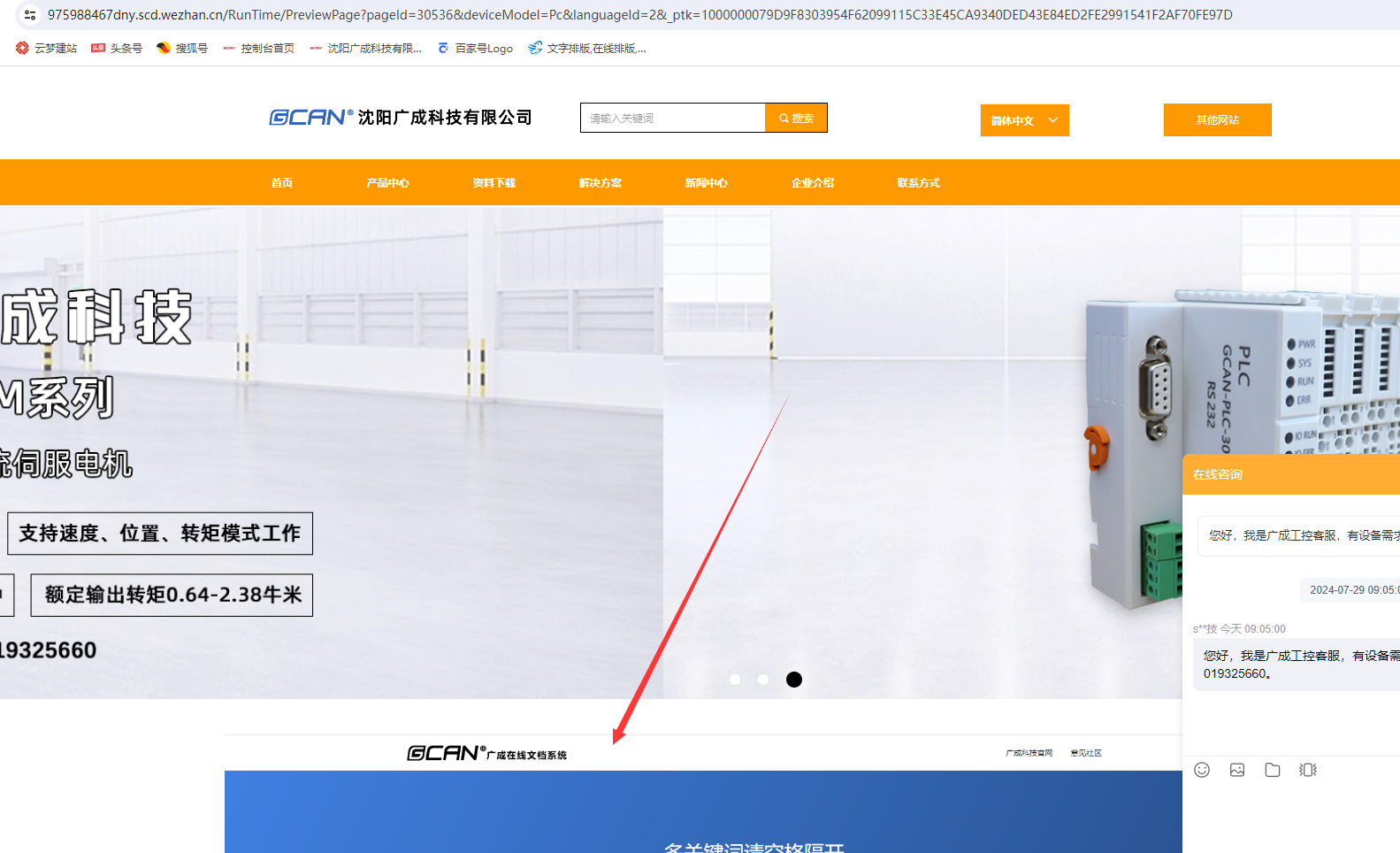 首先,您进入广成科技官网www.gcgd.net,然后找到首页的“文档系统”