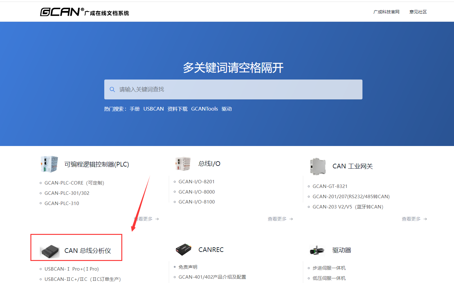 点击“文档系统”进入当中,找到“CAN分析仪”选项,点击进入