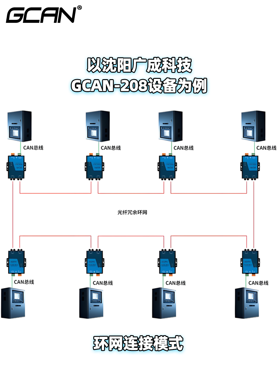 除了以上几种拓扑方式以外,沈阳广成科技GCAN-208系列CAN转光纤设备也支持树状拓扑方式。如果您有储能消防等对于通讯可靠性要求比较高的项目,需要实现CAN转光纤通讯,可以加微信13019325660或前往沈阳广成科技官网进行具体的咨询,欢迎来访。