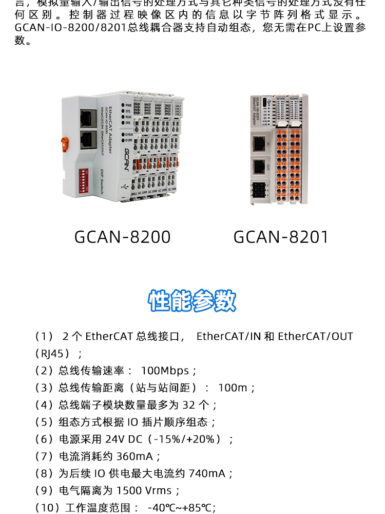 GCAN-8200插片式ethercat IO耦合器