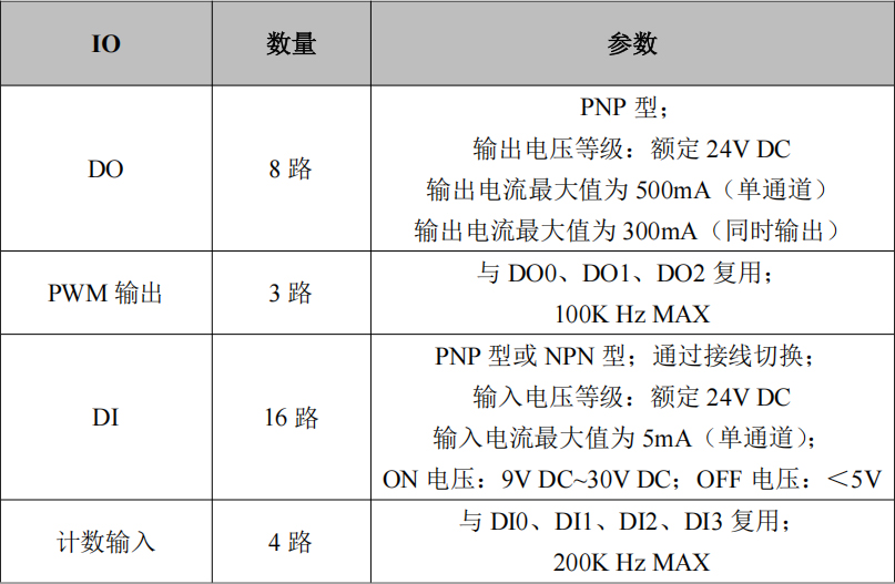 (4)8路DO(复用3路PWM脉冲输出);16路DI(复用4路计数输入);