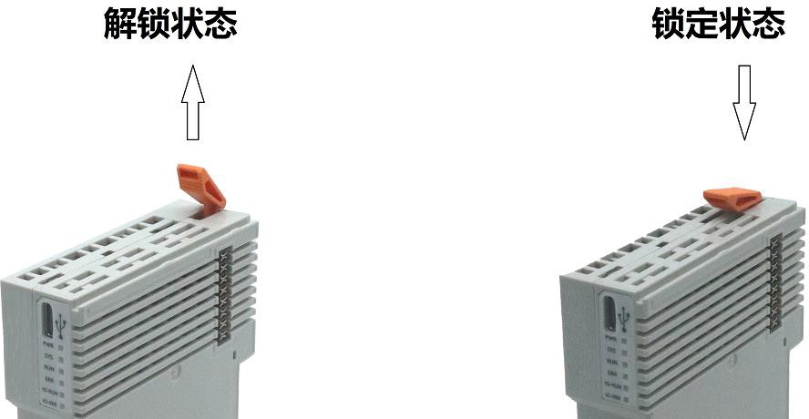 图2.2 GCAN-PLC-325可编程逻辑控制器模块锁定和解锁状态