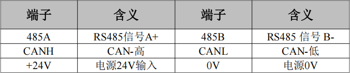 表2.2 GCAN-PLC-325 RS485+CAN+电源接线端子定义