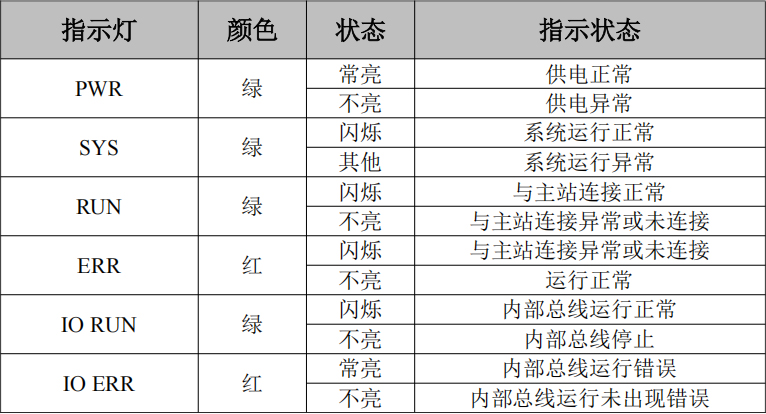 指示灯的具体指示、指示灯处于不同状态下时,GCAN-PLC-325模块状态如表2.3所示。