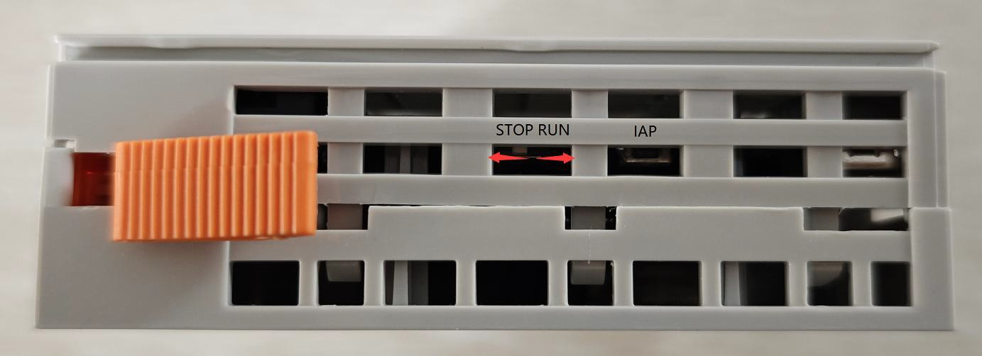 GCAN-PLC-325提供1个程序运行开关和1个复位按键。设备顶端实物图如图4.1所示: