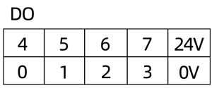 GCAN-PLC-221的主控模块右侧顶板含有上下四排端子排,下方两排端子排的右侧为DO端子排,分别为DO0~DO7共8个数字量输出点,以及1组IO供电电源接口(IO供电电源已与系统电源隔离,IO模块需供电后才能正常工作),如图所示。各个端子对应的序号及其含义如表2.4所示。