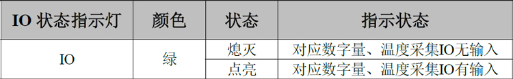 IO指示灯用来指示设备数字量IO、温度采集的运行状态(模拟量AI无指示灯)。