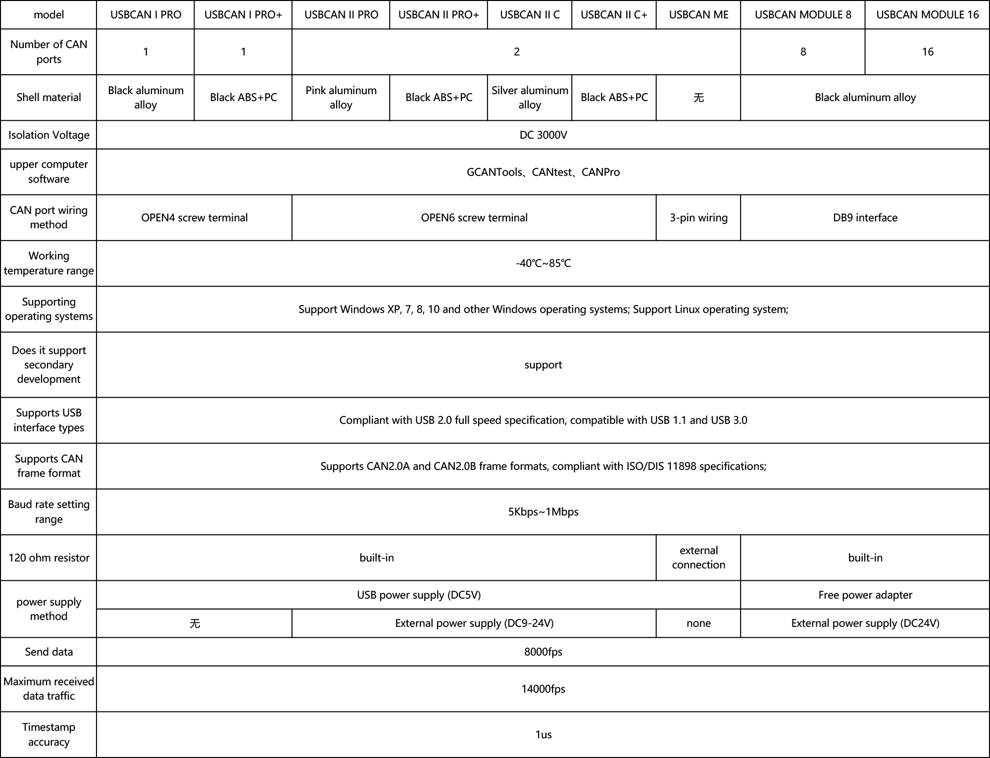 - USBCAN II C/II PRO/I PRO/II C+/ME