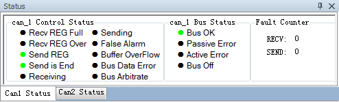 CAN controller arbitration lost: when this node failed to compete to the CAN-Bus with other equipment, the message would try to transmit next time, and catch the corresponding error information to display.