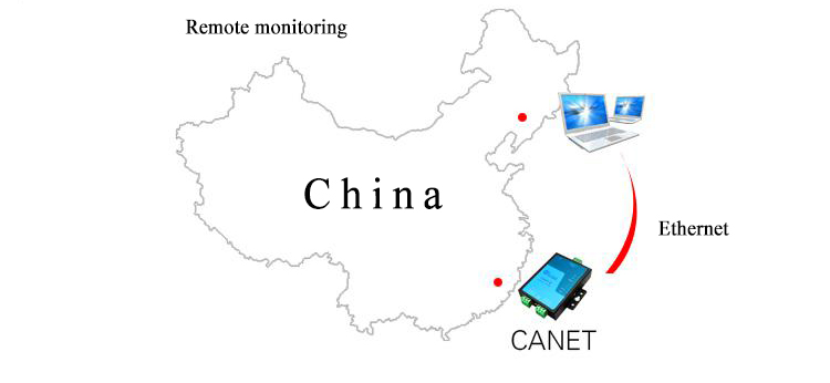 The Ethernet to CAN converter is a high-performance Ethernet to CAN communication converter that integrates 2-channel CAN interfaces and 1-channel Ethernet interface. The use of this Ethernet to CAN converter can realize the mutual transfer of data on the two types of buses, enable remote monitoring or control of the CAN-bus, and expand the application of the CAN-bus network.