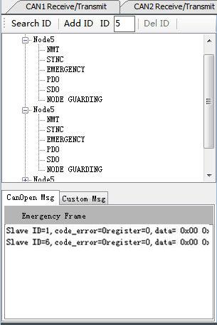 ECANTools can receive EMERGENCY messages from the slave station node. The message is sent by a slave node in a state of emergency. The CANopen master function of the ECANTools can receive and process this EMERGENCY message.