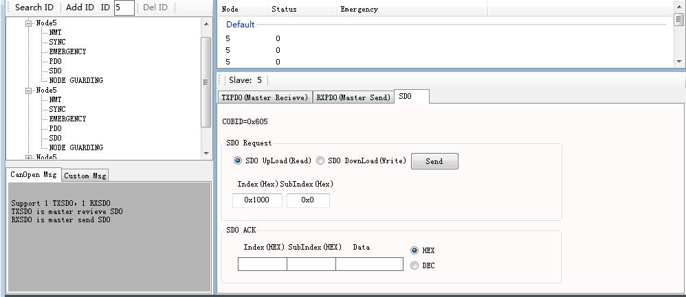 5 SDO (Service data object) CANopen master module SDO function is divided into transmitting and receiving SDO. The SDO function in ECANTools allows users to communicate with the slave station by editing indexes and sub indexes.