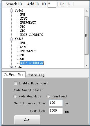 There are two ways to implement the node guarding function in ECANTools. The master station sends the command automatically to inquire about the status of the slave node (Node Guarding) and the slave node transmits its status periodically in the heartbeat (Heartbeat).