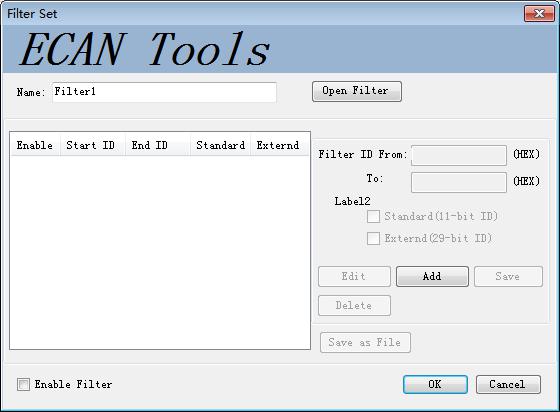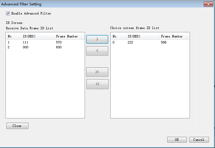 The receive filter setting can set the filter ID or ID range. If the filter is set, the software will only display the filtered ID range and the ID that is not in the filter range will be filtered out.