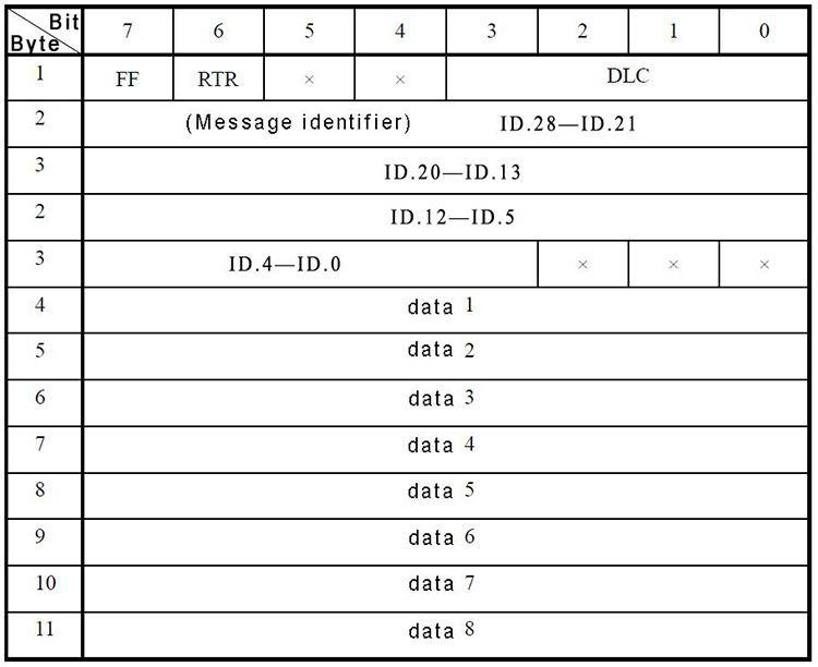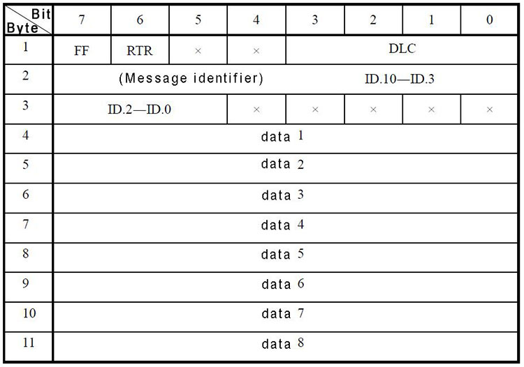 CAN standard frame information is 11 bytes, including two parts: information and