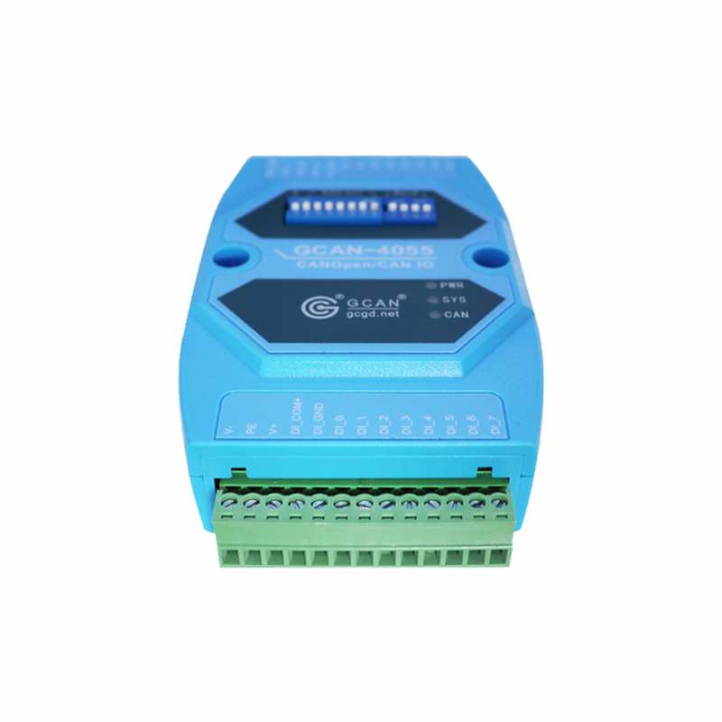 In order to meet everyone's needs for canopenio equipment, Shenyang Guangcheng technology has launched gcan-4055 canopenio equipment. Gcan-4055 canopenio equipment of Shenyang Guangcheng technology is an industrial CANopen digital input and output module integrating 1-way standard CANopen interface, 8-way switching value input channels and 8-way switching value output channels. Using gcan-4055 module, users can collect digital input signals, output digital signals, control switches, realize the connection between remote switchgear and CANopen network, and form a control node for data signal acquisition and output in CANopen network.