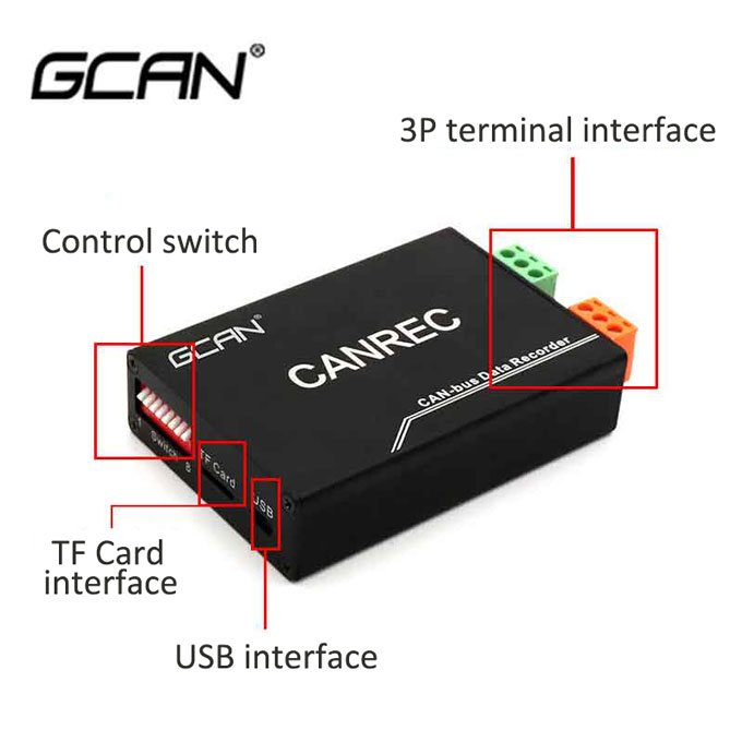 This kind of CAN recorder is usually uses TF memory card as storage carrier. In the application, the engineer connects it to the bus and flips the switch to make the real-time data stored in real time on TF memory card, so that realizes the off-line real-time storage without computer. After storage, the user can bring the TF memory card back and restore the data from card to real bus data through the special analysis software, which is convenient for user to analyze.