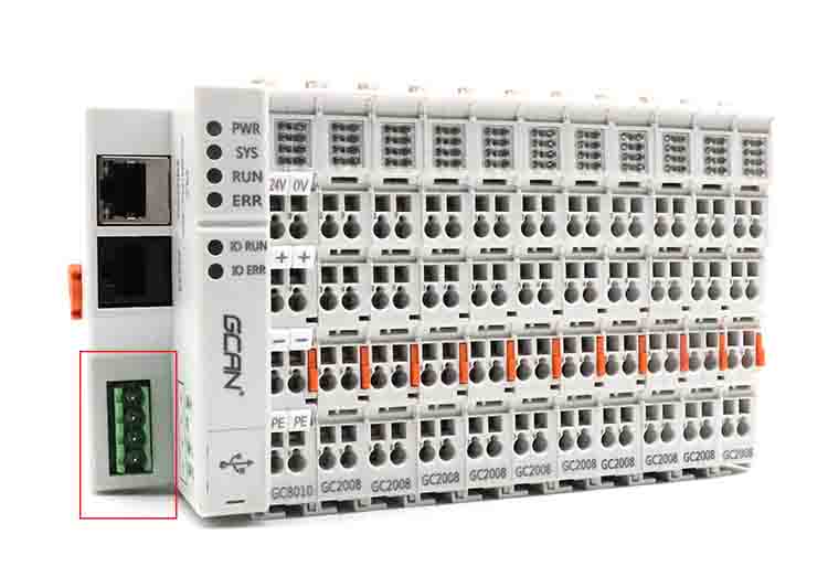 The GCAN-PLC-400 series PLC with CAN port system consists of a programmable main control module (GCAN-PLC-400), several GC series IO modules (GC-1008, GC-3804, etc.) and a terminal terminal module. GCAN-PLC-400 series PLC with can port PLC system can connect all GC series IO modules, users can choose to expand IO modules according to the actual needs of the site, the number of extended IO modules can reach 32. The GCAN-PLC-400 main control module supports automatic configuration. The user does not need to set parameters on the PC. The main control module will be automatically configured according to the front and rear positions of the inserted terminal module. GCAN-PLC-400 series PLC with can port can not only complete a variety of digital / analog input / output, but also integrate a variety of commonly used industrial fieldbus, such as: CAN bus, RS232/485 bus, Ethernet bus, And support common communication protocols such as: CANopen, ModbusRTU, ModbusTCP, etc., users can easily use these communication buses to achieve function expansion and real-time communication.