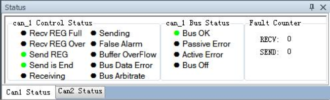 CAN bus status display: indicate the CAN bus status include: bus normal, passive error, active error, bus hung.