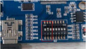 Open the shell of the converter, find the DIP switch shown below, turn switch 2 to "ON", then connected to the power supply, you can enter the configuration mode.