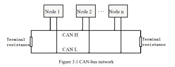 In order to improving the communication reliability and eliminating CAN-bus terminal reflection, the two furthest terminal need to connect terminal resistance between CAN_H and CAN_L as shown in figure 3.2. Terminal resistance values determined by the characteristic impedance of the cables. Such as, the characteristic impedance is 120Ω.
