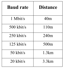 Note: the CAN-bus cable can use ordinary twisted-pair cable, shielded twisted-pair cable. Theory of the maximum communication distance depends on the bus baud rate, Their relationship as shown in the Table 3.1.