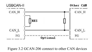 NOTE: GCAN-206 doesn't have integrated 120Ω terminal resistance, and need the customer to add it.