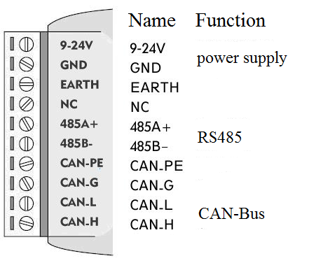 GCAN-207 converter port definition as shown in figure 2.1 and figure 2.2, using the terminal and the RS232 port, for industrial field application.